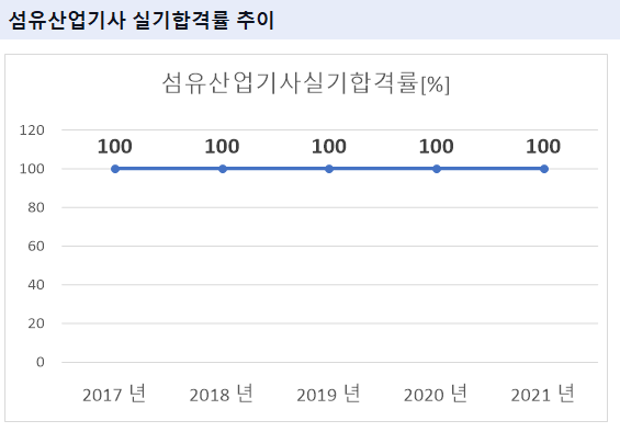 2021년 기준 섬유산업기사 실기 합격률은 100% 입니다.