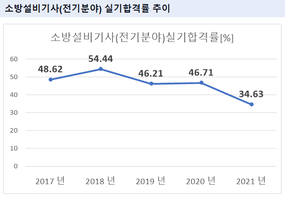 2021년 기준 소방설비기사(전기분야) 실기 합격률은 34.63% 입니다.