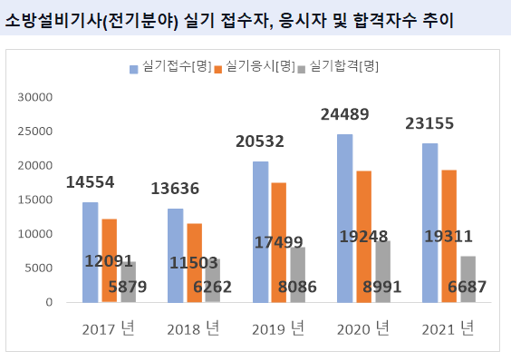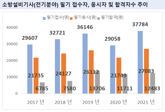 안녕하세요? 오늘은 소방설비기사(전기분야) 합격률 및 소방설비기사(전기분야) 실기 필기 응시자수 추이에 대해 연도별로 자세하게 알아보겠습니다.