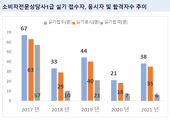 그리고, 최종적으로 소비자전문상담사1급 실기시험에 합격한 소비자전문상담사1급 실기시험 합격자수는 2021년 6명 입니다.