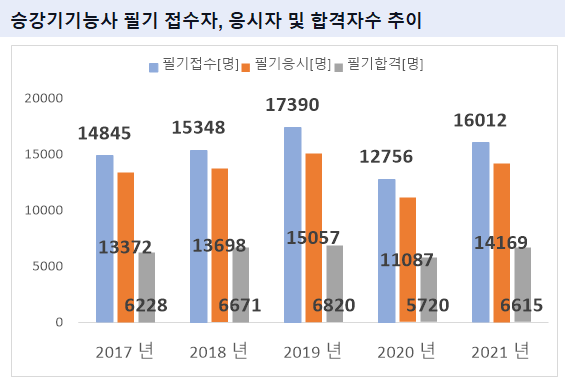 안녕하세요? 오늘은 승강기기능사 합격률 및 승강기기능사 실기 필기 응시자수 추이에 대해 연도별로 자세하게 알아보겠습니다.