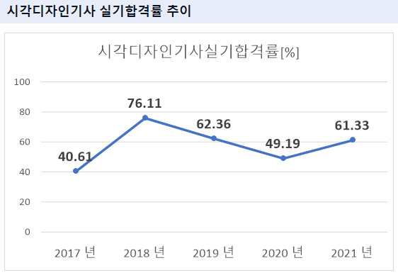 2021년 기준 시각디자인기사 실기 합격률은 61.33% 입니다.