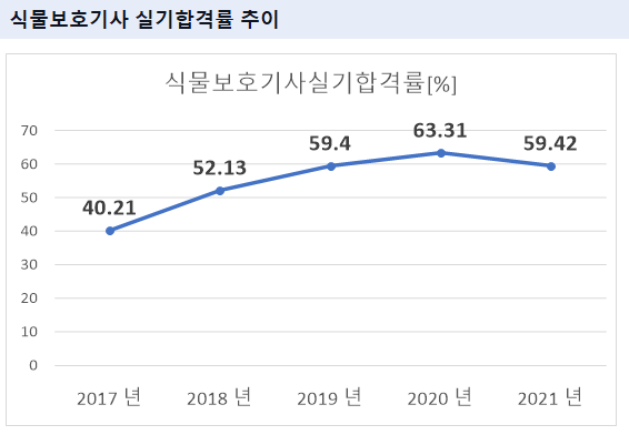 2021년 기준 식물보호기사 실기 합격률은 59.42% 입니다.