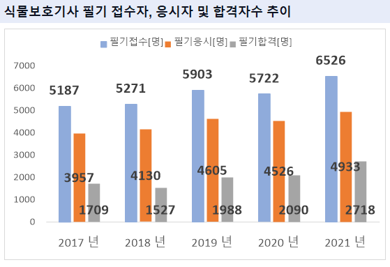 그리고, 식물보호기사 필기시험에 최종 합격한 식물보호기사 필기 합격자수는 2021년 기준 2718명 입니다.