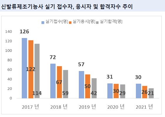 이러한 신발류제조기능사 실기 합격률은 사실 신발류제조기능사 실기시험 응시자수의 변동에도 영향을 많이 받습니다.