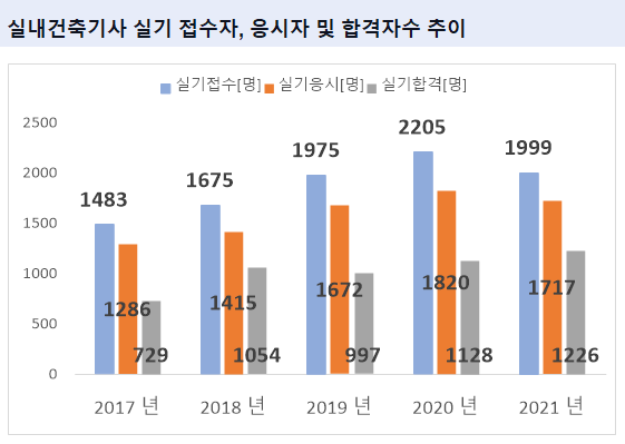 안녕하세요? 오늘은 실내건축기사 합격률 및 실내건축기사 실기 필기 응시자수 추이에 대해 연도별로 자세하게 알아보겠습니다.