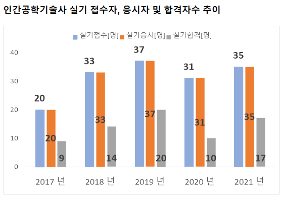 그리고, 최종적으로 인간공학기술사 실기시험에 합격한 인간공학기술사 실기시험 합격자수는 2021년 17명 입니다.
