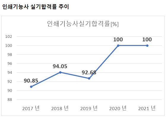 2021년 기준 인쇄기능사 실기 합격률은 100% 입니다.