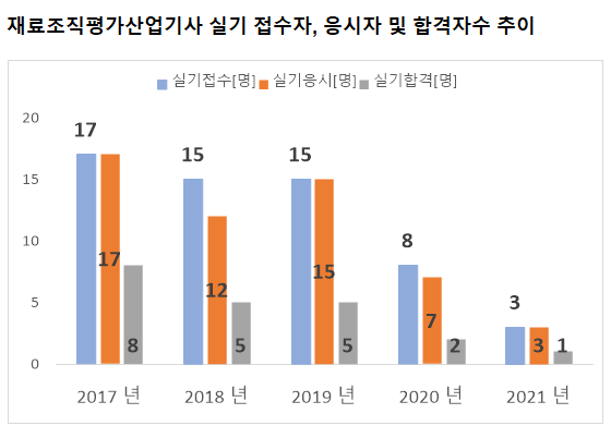 그리고, 재료조직평가산업기사 필기시험에 최종 합격한 재료조직평가산업기사 필기 합격자수는 2021년 기준 2명 입니다.