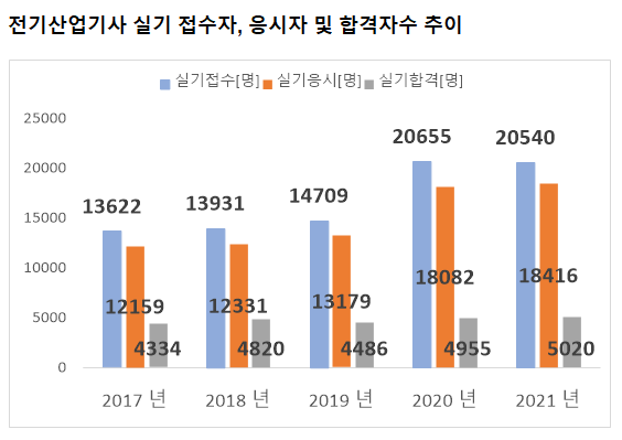 안녕하세요? 오늘은 전기산업기사 합격률 및 전기산업기사 실기 필기 응시자수 추이에 대해 연도별로 자세하게 알아보겠습니다.